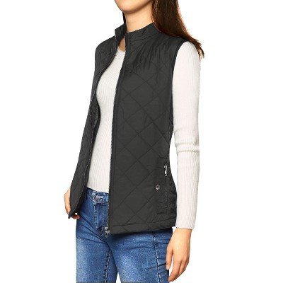 Allegra K Women S Zip Up Front Stand Collar Slant Pockets Quilted Padded Vest Target